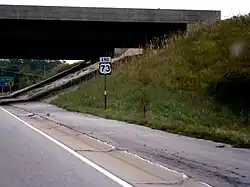 The original southern terminus was at Atoka, Oklahoma at an intersection with U.S. Highway 75. From the creation of the highway in 1926 until April 11, 1935,[1] US 73 was split between Oswego, Kansas and Horton, Kansas. US 73E followed modern US 160 from Oswego to Columbus, then modern US 69 to Kansas City, where it then latched onto what is now US 73. The US 73E designated then went from Kansas City to Horton. US 73W followed the route of modern U.S. Route 59 from Oswego to K-39, K-39 west to Chanute, modern U.S. Route 169 from Chanute to Garnett, modern US 59 again from Garnett to Nortonville, and then modern U.S. Route 159 from Nortonville to Horton. On April 10, 1935, US 73 was truncated at Kansas City with the modern designations taking over the old routes and US 69 taking over the Atoka-Oswego segment.[2] In Kansas City, US 73 previously followed U.S. Route 24 into downtown Kansas City, Kansas, terminating at the Intercity Viaduct (Lewis and Clark Viaduct), before Interstate 435 was completed. After I-435 was completed, US 73 ended at its intersection with I-435. On December 1, 2008, the southern terminus was rerouted, along with US 24 and US 40, southward along K-7 to its new terminus at I-70.[3]
