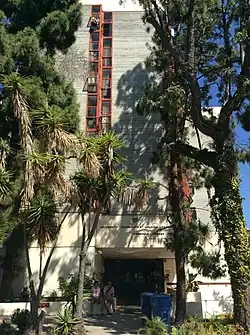 The University Cooperative Housing Association (UCHA) is a student housing cooperative in Westwood, Los Angeles near the University of California, Los Angeles (UCLA) campus. Able to house and feed over 400 members, the UCHA primarily offers housing to UCLA students, but welcomes members from any institution.[1] The UCHA operates three buildings: Hardman-Hansen Hall (HHH or "Triple H"), Essene Hall, and Robison Hall. Jim Morrison of The Doors purportedly lived at the UCHA during his time at UCLA.[2] Alongside the UCLA campus, Hardman-Hansen and Robison Halls were used as filming locations for the 1982 horror film, The Dorm That Dripped Blood.[3] Many students of China's Lost Generation studying at UCLA resided at the UCHA.[4]