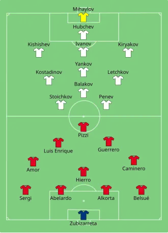 On the second matchday, on 13 June, the match between Bulgaria and Romania featured a ghost goal by Dorinel Munteanu: in the first half, with Romania already 1–0 down to an early Hristo Stoichkov goal, Munteanu's shot hit the crossbar, crossed the goal line by about a foot, after which it bounced back. Referee Peter Mikkelsen and his assistants did not notice and the goal was not awarded.[3]