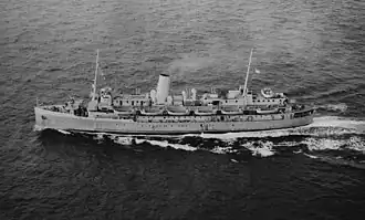 Cuba, official number 221220 with signal MCRW that was KDBT by 1941, was 2,479 GRT, 341 ft 2 in (104.0 m) length overall, 325 ft (99.1 m) registry length ship with 47 ft 2 in (14.4 m) breadth.[3][4][5] The two engines were oil fueled reciprocating with total 3,600 indicated horsepower driving two screws. Registry crew was 54 and home port was New Haven, Connecticut.[3][4]