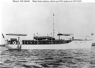 USS Audwin (SP-451) was a patrol vessel that served in the United States Navy from 1917 to 1919. She then was a survey vessel in the United States Coast and Geodetic Survey from 1919 to 1927.