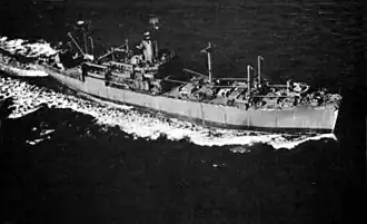 USS Clay was originally laid down as Sea Angel by the Western Pipe and Steel Company on 14 October 1942. The vessel was launched on 23 January 1943 and commissioned into the US Navy as naval transport USS Clay (AP-84) on 29 June 1943. The ship then sailed from San Pedro to New York, where she was decommissioned for conversion on 11 August 1943, and recommissioned into service as an attack transport designated APA-39 on 21 December 1943, after which she sailed to Pearl Harbor in preparation for operations against the Japanese.