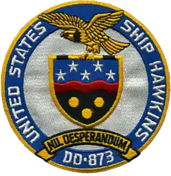 USS Hawkins (DD-873) was a Gearing-class destroyer in the United States Navy during World War II. Following the war, the ship saw service in the Korean War and in the 1970s, was transferred to the Republic of China Navy as Tze Yang. She remained in service until the 1990s. The ship was then scrapped with the exception of her superstructure, which became part of a display and training ground at the Zuoying Naval Academy.