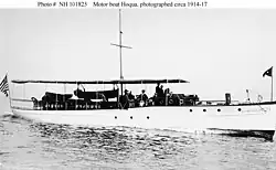 Hoqua was built as a civilian yacht in 1914 by Charles Seabury at Morris Heights in the Bronx, New York. The U.S. Navy acquired her from her owner, Robert M. Curtis of Chicago, Illinois, in June 1917 for use as a patrol vessel during World War I. She was commissioned at Brooklyn, New York, on 27 July 1917 as USS Hoqua (SP-142).
