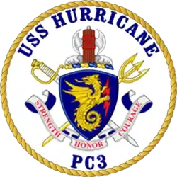 USS Hurricane (PC-3) is the third of the Cyclone-class of United States Navy coastal patrol ships, named for various weather phenomena.