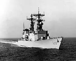 USS Moosbrugger (DD-980) was a Spruance-class destroyer built for the United States Navy by the Ingalls Shipbuilding Division of Litton Industries at Pascagoula, Mississippi. Affectionately nicknamed the "Moose" by her crews, she was named in honor of Vice Admiral Frederick Moosbrugger who is best known for his service in World War II as a highly successful commander of destroyer squadrons.