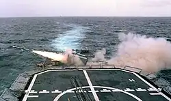 USS Moosbrugger launches a Sea Sparrow missile on 15 July 1996