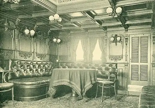 In 1899, when the Niagara was owned by Howard Gould, photographs of the ship were included a book entitled Niagara; The Old And The New by Frank L. Blanchard.[4] Originally, Niagara had a Welte Style 6 Concert Orchestrion which went through two decks (as pictured below - only the lower portion of the instrument is visible in the second row center photograph); Gould replaced this in 1912 with a Welte Philharmonic Organ.[5]