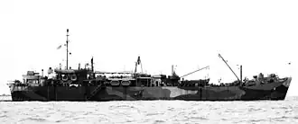 Post-war duties took her to Okinawa, then to China. At Shanghai from October into December, she serviced landing and patrol craft assigned to China Group. On 25 December, she headed back to the United States to prepare for inactivation. Decommissioned 15 January 1947, she was berthed at San Diego, as a unit of the Pacific Reserve Fleet until struck from the Naval Vessel Register 1 July 1961,[2] and sold 3 May 1962 to Zidell Exploration of Portland, Oregon for scrapping.