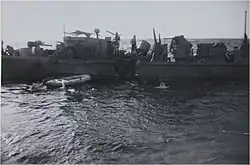 "1240 U.S.S. YMS 249 came alongside to tow us in, proceeding at 1250"