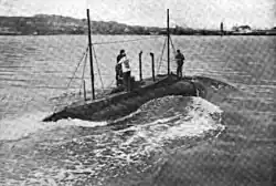 Shortly after the United States entered World War I, A-5 sank while moored at the Cavite Navy Yard on 15 April 1917; her sinking was attributed to a slow leak in a main ballast tank. She was raised on 19 April and, following reconditioning, returned to active service. Like her sister-ships, she patrolled the waters off the entrance to Manila Bay during the course of the war with the Central Powers.