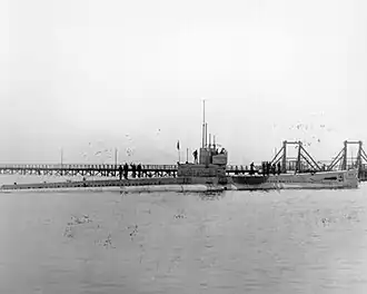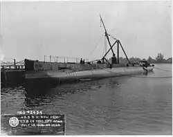 USS R-21 (SS-98) was an R-class coastal and harbor defense submarine of the United States Navy. Her keel was laid down on 19 April 1917 by the Lake Torpedo Boat Company in Bridgeport, Connecticut; the R-boats built by Lake Torpedo Boat (R-21 through R-27) are sometimes considered a separate class from those built by Fore River Shipbuilding (R-1 through R-14) and Union Iron Works (R-15 through R-20). She was launched on 10 July 1918 sponsored by Mrs. Dallas C. Laizure and commissioned on 17 June 1919.