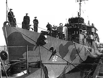 ![]() USS Register during her commissioning ceremony at Charleston Navy Yard, on 11 January 1945