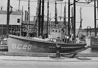 USS SC-20, until July 1920 known as USS Submarine Chaser No. 20 or USS S.C. 20, was an SC-1-class submarine chaser built for the United States Navy during World War I. SC-17 was a wooden-hulled 110-foot (34 m) submarine chaser built at the New York Navy Yard at Brooklyn, New York. She was commissioned on 18 October 1917 as USS Submarine Chaser No. 20, abbreviated at the time as USS S.C. 20.