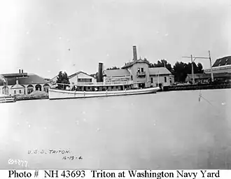 Triton spent her entire career operating from the Washington Navy Yard at Washington, D.C. She frequently steamed down the Potomac River to the naval reservation at Indian Head, Maryland; during 1900 alone, she recorded 198 round-trips between Washington and Indian Head. During Triton's career, Indian Head was home first to the Naval Proving Grounds in the 1890s and then to the Naval Powder Factory during the first half of the 20th century; in all probability, Triton towed barges to Indian Head laden with materials to be used there in the testing of naval guns and in the production of gunpowder and explosives.