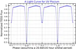 - ^ a b Sadik, A. R. (July 1979), "Light and Colour Curve Observations and Analysis of the Short Period Eclipsing Binary System UV Psc", Astrophysics and Space Science, 63 (2): 319–349, Bibcode:1979Ap&SS..63..319S, doi:10.1007/BF00638905, S2CID 122684321.