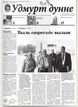 Udmurt Dunne (Udmurt: Удмурт дунне, The Udmurt World) is the main Udmurt language newspaper.