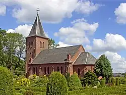 Uldum Church was built in 1883. A granite stone in the churchyard features hollows from the Bronze Age.[2]
