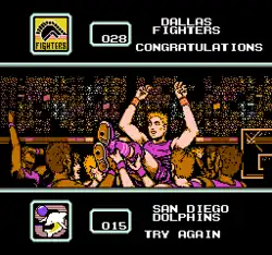 It was possible for so many players to foul out that only three or four were on the floor at the end of the game. In the Japanese version, a generic cheerleader comes over to the player and kisses him for winning the championship.[1]