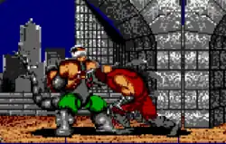 Ultra Vortek originally went under the name Ultra Vortex and was announced in early 1994.[9][21][22][23] It was first showcased to the public at Summer Consumer Electronics Show (CES) of the same year,[24][25][26][27][28] featuring only four playable characters and different stage visuals compared to the final release.[29][30][31][32] The game was originally intended to be released in December 1994 and was later featured in the Do The Math promotional recording sent by Atari Corporation to video game retail stores in a more advanced state of completion, closely resembling the final version.[33][34][35]