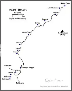Ulu Paku is an area in the small sub-district of Spaoh, Betong Division, Sarawak, Malaysia. It is a primarily native Iban area. It is made up of 11 Iban longhouses (not including Anyut area). The longhouses here, despite being called longhouses are relatively short with the longest being only around 25 biliks or houses. The longhouses are: