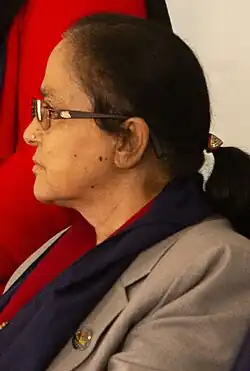 Uma Regmi (Nepali: उमा रेग्मी), is a Nepali politician and former Minister for Women, Children and Senior Citizens of Nepal. She is a member of House of Representatives[2] selected through PR[3] (proportional representation) system, belongs to the Nepali Congress party.[2] Regmi is also the current President of the Nepal Women Association (NWA) which is a sister wing of Nepali Congress.[4][5]