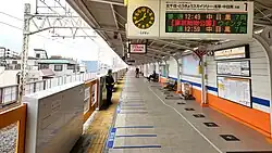 This station consists of an island platform serving two tracks. Express tracks are on the outside to allow trains to pass this station.