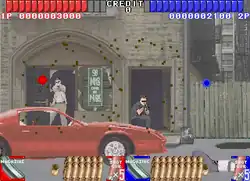 This game is an arcade lightgun rail shooter that up to two players can play simultaneously. Players have individual life bars, and are armed with sub-machine guns. The players have to shoot the "Hoppers" down, without shooting innocent victims and fellow policemen.