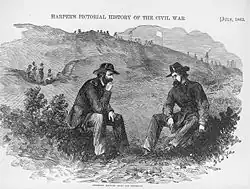 It appears that the term "Army of the Tennessee" was first used within the Union Army in March 1862, to describe Union forces perhaps more properly described as the "Army of West Tennessee"; these were the troops under the command of Maj. Gen. Ulysses S. Grant in the Union's District of West Tennessee.[3] This article also covers Grant's 1861–1862 commands – the District of Southeast Missouri and the District of Cairo – because the troops Grant led in the Battle of Belmont and the Henry-Donelson campaign during that period became the nucleus of the Army of the Tennessee.[4] In April 1862, Grant's troops survived a severe test in the bloody Battle of Shiloh. Then, during six months marked by discouragement and anxiety for Grant, his army first joined with two other Union armies to prosecute the relatively bloodless Siege of Corinth and then strained to hold Union positions in Tennessee and Mississippi. In October 1862, Grant's command was reconfigured and elevated to departmental status, as the Department of the Tennessee; the title of his command was thus officially aligned with that of his army.[5] Grant commanded these forces until after his critically important victory at Vicksburg on July 4, 1863. Grant was then tasked with command of the Military Division of the Mississippi, overseeing this army and additional Union armies.