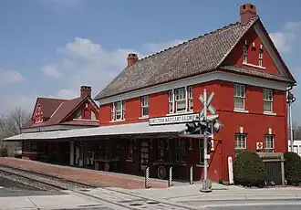 Union Bridge station is a historic railway station in Union Bridge, Carroll County, Maryland. It was built in 1902 as a stop for the Western Maryland Railway. It is representative of the rural railway stations constructed during the late 19th and early 20th centuries. The station's two buildings are arranged with their south façades lengthwise fronting the railroad tracks.[2]