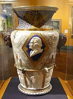 From 1864 to 1869, the firm was known as Thomas C. Smith and Company, but the factory itself continued to be called the Union Porcelain Works. In its first decade, its products were limited to sturdy white china plates and dishes for the hotel trade, electrical insulators, hardware trimming, and decorated tiles. However, in 1874, in preparation for the Centennial Exposition, Smith hired sculptor Karl L. H. Müller (c. 1820–1887) as the company's chief designer. Mueller then created a wide range of designs for porcelain pieces, most notably the Century Vase which was exhibited at the Centennial Exposition. John Mackie Falconer also created designs for the company.