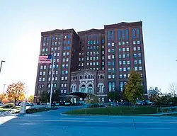 The Union Stockyards of Omaha, Nebraska, were founded in 1883 in South Omaha by the Union Stock Yards Company of Omaha.[1] A fierce rival of Chicago's Union Stock Yards, the Omaha Union Stockyards were third in the United States for production by 1890.[2] In 1947 they were second to Chicago in the world. Omaha overtook Chicago as the nation's largest livestock market and meat packing industry center in 1955, a title which it held onto until 1971.[3] The 116-year-old institution closed in 1999.[4] The Livestock Exchange Building was listed on the National Register of Historic Places in 1999.[5]