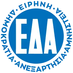 The United Democratic Left (Greek: Ενιαία Δημοκρατική Αριστερά, ΕΔΑ; Eniéa Dimokratikí Aristerá, EDA) was a left-wing political party in Greece, active mostly before the Greek junta of 1967–1974.