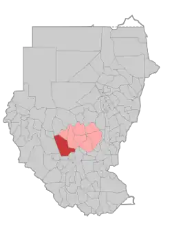 ![]() Disputed Abyei region (dark red) in South Kordofan | ||