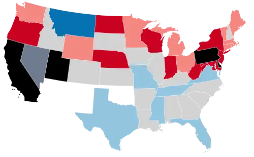 2. ^ a b Congressional seat gain figures only reflect the results of the regularly-scheduled elections, and do not take special elections into account.