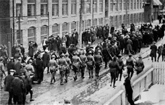 During the 1900s & 1910s, UTW engaged in intense competition with the Industrial Workers of the World (IWW) for the allegiance of textile workers across the northeastern United States. Generally opposed to strikes as a means of solving industrial disputes, the UTW frequently collaborated with company officials and sent union members to act as strikebreakers to IWW-led strikes, including the 1907 Skowhegan textile strike, the 1912 Lawrence textile strike, the 1913 Hazleton silk strike[2] and the 1913 Paterson silk strike.[3] As such, it had limited success prior to the 1930s, and the union claimed about 350,000 members at the time of a general textile strike in 1934. A year later in 1935, it became a founding member of the Committee for Industrial Organizations, whose Textile Workers Organizing Committee established the basis for a new union, the Textile Workers Union of America, founded in 1939. A diminished UTW continued separately after 1939 and, in 1996, merged with the United Food and Commercial Workers International Union.[4]