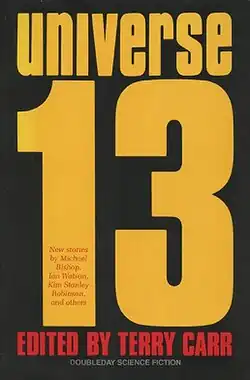 Universe 13 is an anthology of original science fiction short stories edited by Terry Carr, the thirteenth volume in the seventeen-volume Universe anthology series. It was first published in hardcover by Doubleday in June 1983, with a paperback edition from Tor Books in March 1985. The first British edition was issued in hardcover by Robert Hale in March 1986.[1]