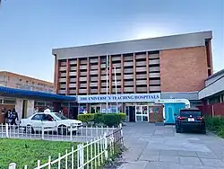 It was built in 1910 with 15 bed capacity and was meant for sick Africans who were only cared for by male orderlies as the hospital had no doctors and nurses.[2][3] With the decision to move the capital city from Livingstone to a much more central Lusaka, plans for a bigger hospital to cater for the increasing number of patients were prepared. Therefore, a new hospital was started at present day UTH site in 1934 and became a training hospital in the same year.[4] UTH offers both inpatient and outpatient care and is a center for specialist referrals from across the country.[5]