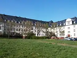 The origins of the Technische Hochschule Mittelhessen in Gießen date back to the establishment of the School for Technical Drawing (“Schule für technisches Zeichnen“) on January 14, 1838, by the Darmstadt State Trade Association (“Landesgewerbeverein Darmstadt“). The school was founded to address widespread complaints that craftsmen were unable to read and understand architectural blueprints. Only a month younger than the Technical University (TU) Darmstadt (December 1937), the THM is the second-oldest higher technical educational institution in Hesse.[6] In 1838, a trade school was also established in Gießen, followed by the foundation of the Gießen Trade Association in 1840. Its members included renowned figures such as Justus von Liebig and Hugo von Ritgen. In 1842, the trade school was expanded to include a „Rechenschule für Handwerker“ (arithmetic school for craftsmen), and in 1846, together with the drawing school formed the „trade school“.[6] Hugo von Ritgen, a professor of architecture and engineering at the University of Gießen and later its rector, took over the leadership of the school in 1878. In 1913, the school was renamed "Grand Ducal Trade School – Construction School" and added a four-semester mechanical engineering department in 1919. It was renamed multiple times over the years, reflecting expansions and changes in its curriculum.[6]