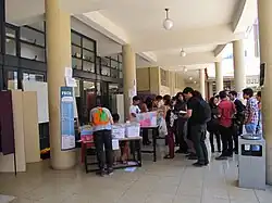 The FECh, along with many student organization in Chile, participated in the 2011-2013 Chilean Student Protests. The demand for better educational standards including increased state support, a more adequate admissions process valuing more fairness, and free public education. Back and forth proposals between the minister of education and the president against the CONFECH took place, often these proposals would not uphold the students demands. As a result the CONFECH continued to protest in numerous ways including mass marches with over 600,000 people attending in August 2011.[16][21] Camila Vallejo led the student protest as president of the FECh and spokesperson of the CONFECH. By late August the once peaceful protests became violent.[21] Riots soon emerged with police using water canons mounted on police vehicles and tear gas being launched into crowd injuring over 250 students who took place in the march.[22] Student led protests continued in 2012 and by 2013 with the presidential election Michelle Bachelet, the new president promised universal access to free education. By 2013, many students still felt as if the countries inequality distribution of wealth was the reason for the continuous disparity in education. The wealthy's unwellness to contribute in growing education in Chile fueled further grievances students were not able to resolve during the protests.[15]