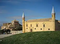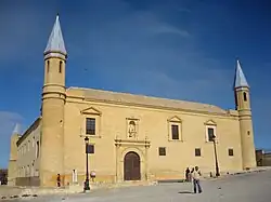 The former University of Osuna is a rectangular two-story building organized around a square courtyard. Its architectural design is characterized by simplicity and severity of its straight lines. Its unique profile, having a tower at each of its four corners, each tower topped by a spire with a glazed ceramic coating, makes it one of the most emblematic buildings of the city.[1]