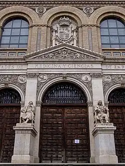 Ecclesiastical schools were the initial elements of the University of Zaragoza. These schools were later consolidated into the School of Zaragoza, led by Bishop Braulio during the seventh century (who would later be made the patron saint of the university).[6] The School of Arts officially became a university in 1542, though some scholars argue it could be considered a university of arts since 1477.[7]