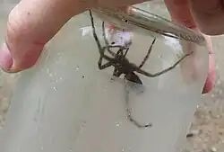 The up-island spider is known to inhabit only a small range above the narrow tidal isthmus that connects the northern and southern halves of the island of Islesboro, Maine.