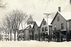 Coombs Bros. (Albert and George) candy and grocery store (located at 298 Main Street in the building between Railroad Crossing and South Street in a different construction than what later occupied the location). Bert set up the town's telephone service in 1895.[15] Elmer Ring's "washerette" later stood in the Coombs location, and it was he who changed the roofline and façade of the building. He also ran a hardware store, a heating and plumbing service, and a coal yard. In 2020, the town gave permission for developers to tear down the historic building.[16] The building was demolished in 2024, to be replaced by sixteen condominiums.[17]