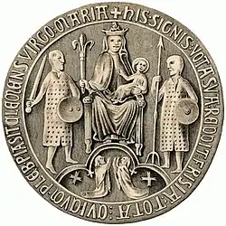 The shorter Old Frisian version is noteworthy for its exclusion of paragraphs twenty-two and twenty-three, which dealt with monetary matters; paragraph twenty-two was dedicated to determining which mendicant orders would be allowed to raise funds for alms in which sealands, while the following paragraph explains which currencies could be accepted in Frisian territory and provides a conversion table to estimate exchange rates.[22][23] The conversion table defines the Westphalian penny, for example, as 3⁄4 of a new English penny or 4⁄5 of an old English penny.[24] It appears that these two paragraphs were later additions to the Statutes.[22] The following year, the league issued more privileges and sanctions with respect to minting.[25]