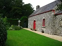 Upton Chapel, close by Upton Castle, near Cosheston, Pembrokeshire, Wales, is dedicated to Saint Giles and is a Grade I listed building. Dating from the 12th or 13th century, it consists of a small nave and chancel. Amongst the memorials in the chapel are the effigies of William Malefant (died in 1362) wearing chain mail and another of a female member of the Malefant family. There are several memorials to local families. There is a small piscina and a Jacobean pulpit. The masonry walls are from local rubble stone. The roofs are slated with tile ridges and there is a bellcote at the west end. The interior was restored in 1978 by the owner of the castle.[1][2][3]