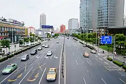 New towns in China typically have common design elements including wide avenues, large green spaces between tall buildings, shopping malls, and gated residential neighborhoods in a design approach with prioritizes scale and speed.[10]: 21
