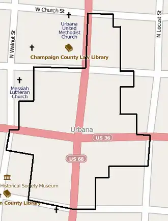 | Location | Roughly bounded by Market, Walnut, Church, and Locust Sts., Urbana, Ohio |