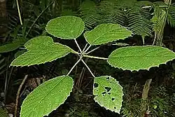 Urera baccifera is a species of flowering plant in the nettle family known by many common names, including scratchbush,[1] ortiga brava, pringamoza, mala mujer, chichicaste, nigua, guaritoto, ishanga, manman guêpes, and urtiga bronca.[2] It is native to the Americas from Mexico through Central America into South America, as well as the Caribbean.[3]