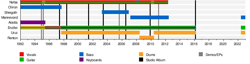 - Nefas – vocals, guitar (1992–2012; died 2012), drums (1995, 2010), bass (2008)